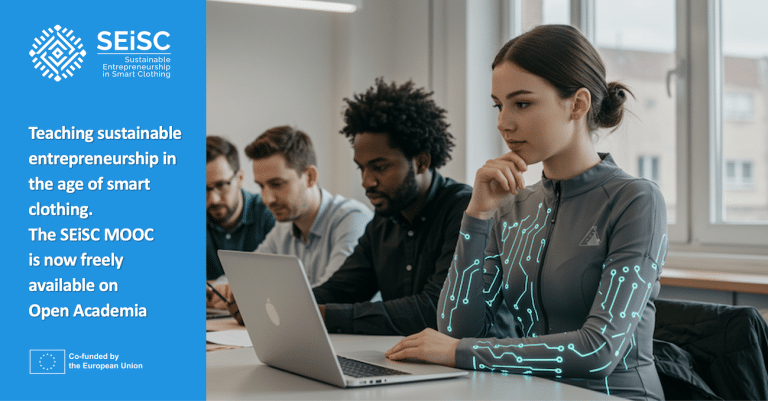 SEiSC (Akıllı Giyimde Sürdürülebilir Girişimcilik), altı ülkeden (Finlandiya, İtalya, İspanya, Türkiye, İrlanda ve Bulgaristan) dokuz kuruluşu bir araya getiren bir Erasmus+ projesidir. Koordinatör kuruluş, mesleki eğitimde derin deneyime sahip bir Finlandiya meslek eğitim kurumu olan LHKK (Lounais-Hämeen koulutuskuntayhtymä)’dir. Proje, tam anlamıyla akıllı giyim teknolojisiyle ilgili değildir. Çok daha zor bir konuyla ilgilidir: Mesleki eğitim öğretmenlerini, öğrencilerinde sürdürülebilir bir girişimci zihniyeti geliştirmek için gerekli bilgi ve yöntemlerle donatmak ve bunu yaparken akıllı giyim sektörünü bir mercek olarak kullanmak.